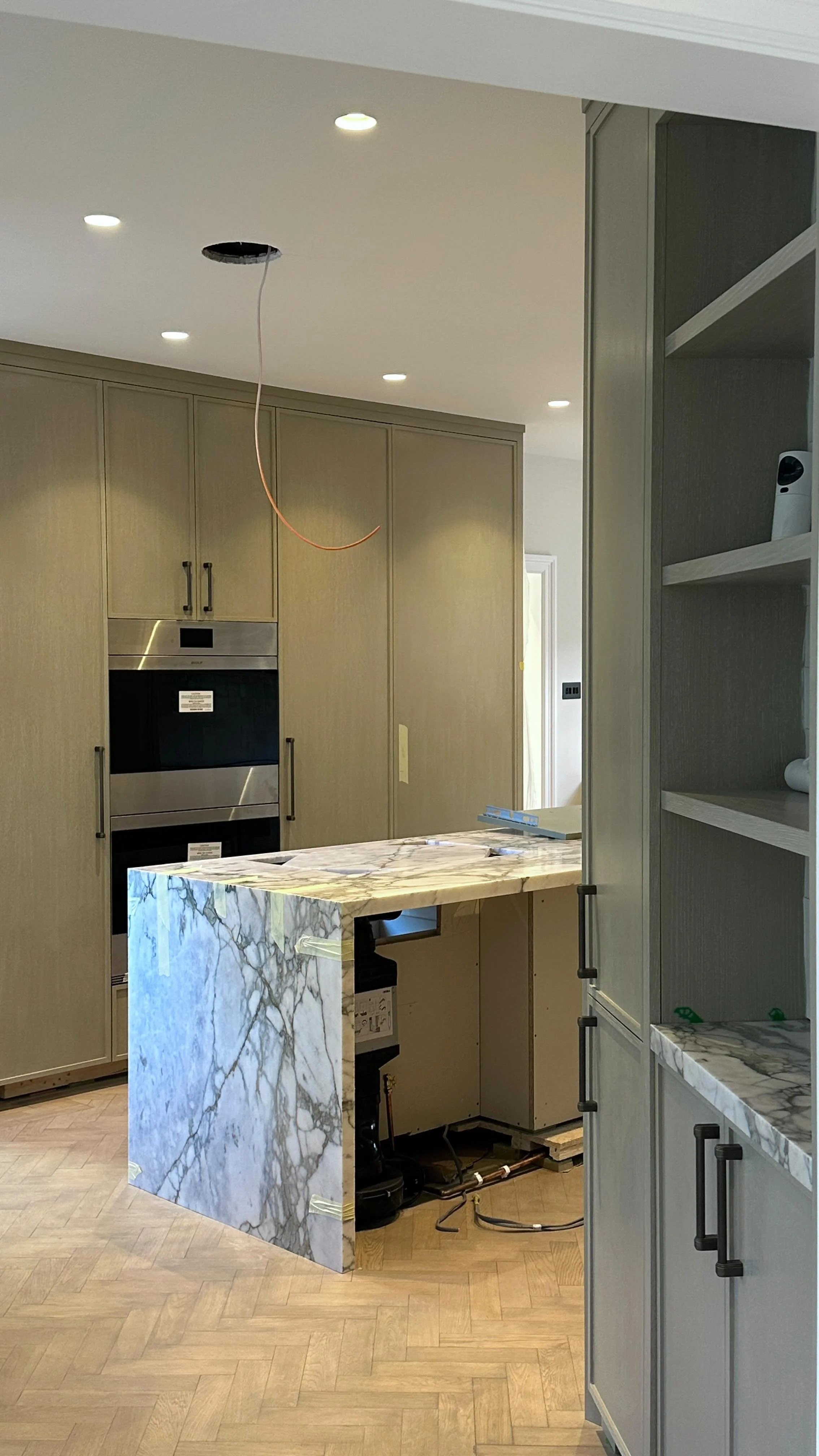 In North London, we worked closely with a client on a full renovation of a large Edwardian home. Andrea and his team achieved an organic blend of French and English styles with crisp decorative mouldings, and refined chevron flooring throughout. Plenty of custom built-in storage has been included in every room to accommodate the needs of this family and their guests. Each unit features luxurious finishes such as exotic timbers, artisan textures and antique mirrors.